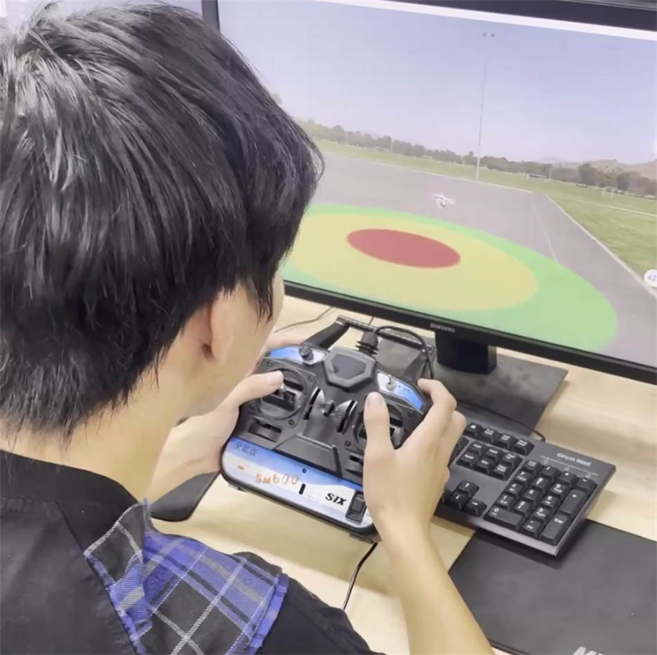 秦黎佩老師介紹到,室內(nèi)模擬飛行系統(tǒng)是理論教學(xué)與實(shí)踐操作的“橋梁”。系統(tǒng)通過高精度物理引擎,1:1還原真實(shí)飛行環(huán)境的氣流變化、無人機(jī)動力響應(yīng)等細(xì)節(jié),幫助學(xué)生提前掌握遙控器操作邏輯、飛行軌跡規(guī)劃及突發(fā)故障應(yīng)急處理能力。“模擬調(diào)試不僅大幅降低了教學(xué)成本——避免了實(shí)機(jī)損耗與場地限制,更重要的是,它讓學(xué)生在‘試錯’中建立起操作自信,為后續(xù)實(shí)飛奠定了扎實(shí)基礎(chǔ)。”。